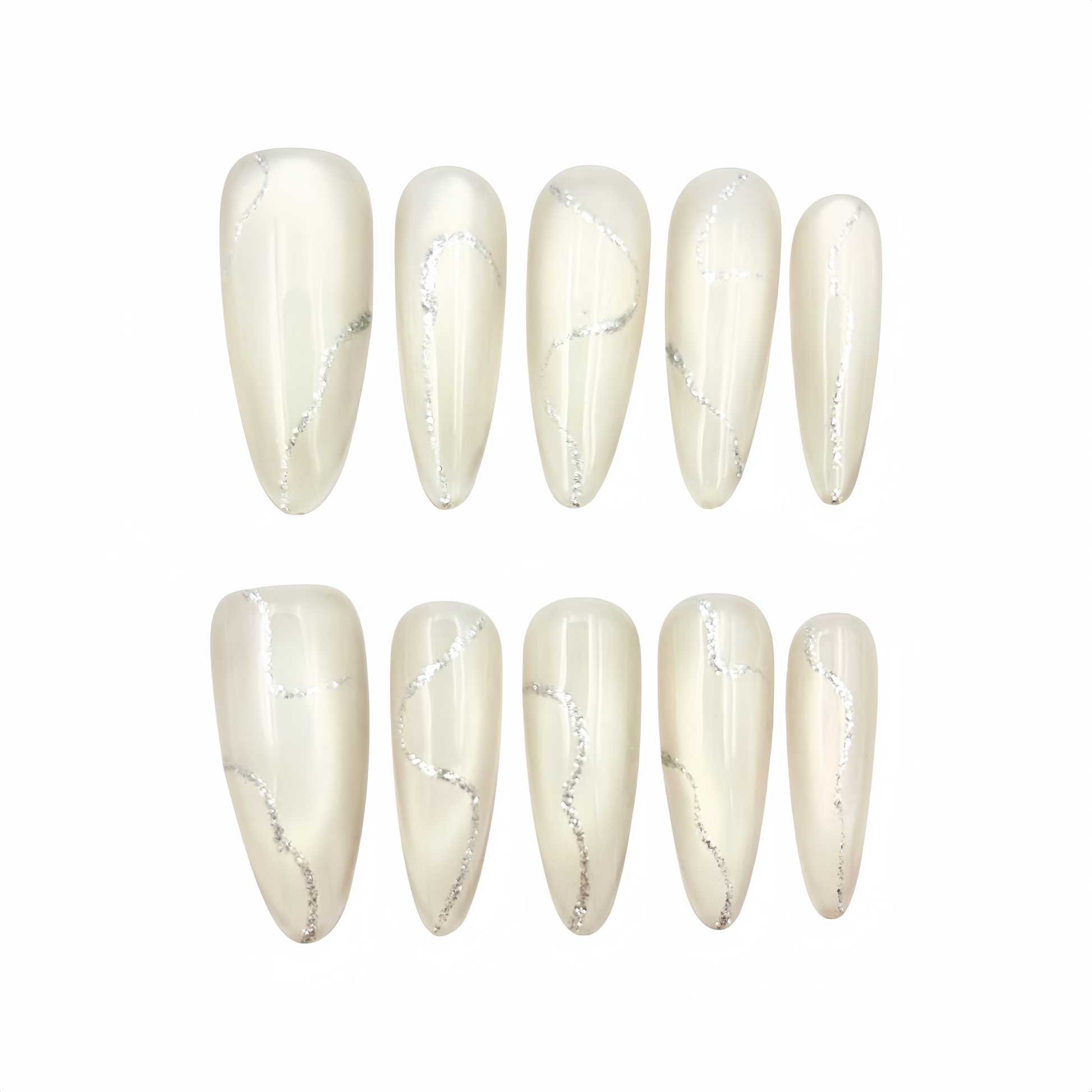 White Silver Crack Press-On Nails - Minimalist False Nails UK